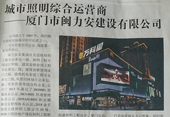 廈門市閩力安建設(shè)有限公司成立于2003年,公司取得市政公用工程施工總承包貳級(jí)、建筑裝修裝飾工程專業(yè)承包壹級(jí)、城市及道路照明工程專業(yè)承包壹級(jí)、電子與智能化工程專業(yè)承包貳級(jí)、消防設(shè)施工程專業(yè)承包貳級(jí)、電力工程施工總承包叁級(jí)、建筑機(jī)電安裝工程專業(yè)承包叁級(jí)、輸變電工程專業(yè)承包叁級(jí)、環(huán)保工程專業(yè)承包叁級(jí)、照明工程設(shè)計(jì)專項(xiàng)甲級(jí)、建筑裝飾工程設(shè)計(jì)乙級(jí)、施工勞務(wù)等資質(zhì)的綜合型企業(yè),公司于2013年通過了ISO9001質(zhì)量體系認(rèn)證,ISO14001環(huán)境管理體系認(rèn)證,OHSAS18001職業(yè)健康安全管理體系認(rèn)證。